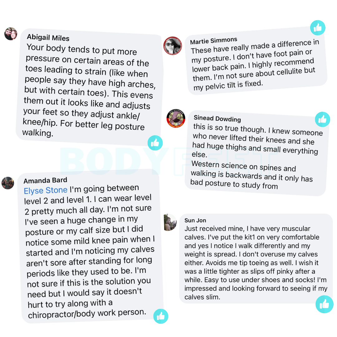 Our BODYFEET kit is made with soft, healthcare grade silicone that is BPA- and latex-free, making it safe for daily use without the risk of allergic reactions. You can wear it with confidence, knowing it will not harm your body or feet.